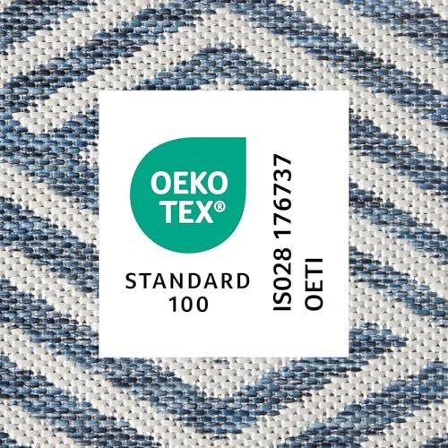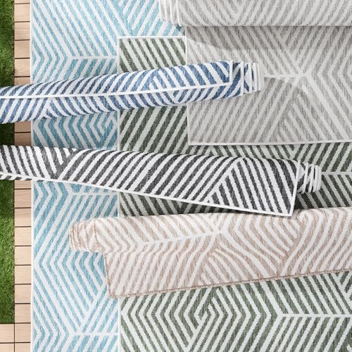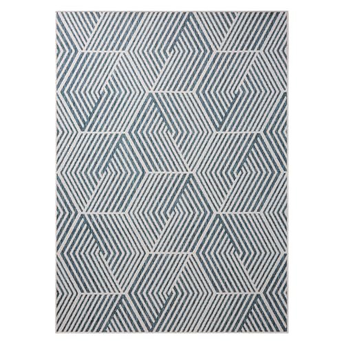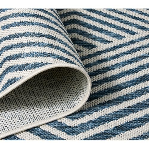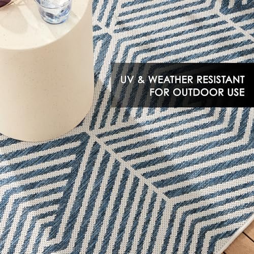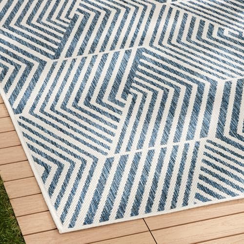 Nicole Miller New York Patio Country Ombre Geo Indoor Outdoor Area Rug, UV Fade Resistant, Low Pile, Navy Blue/Cream, 7’9″x10’2″