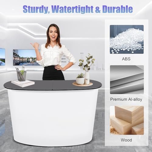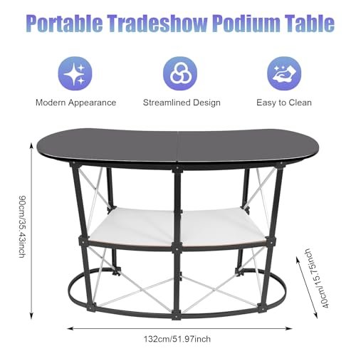 NIENIEE 51.97″ Foldable Tradeshow Podium Table, Portable Exhibition Counter Desk Aluminum Alloy Frame, 154lbs Load-Bearing for Shops, Hotels Events