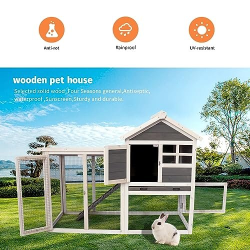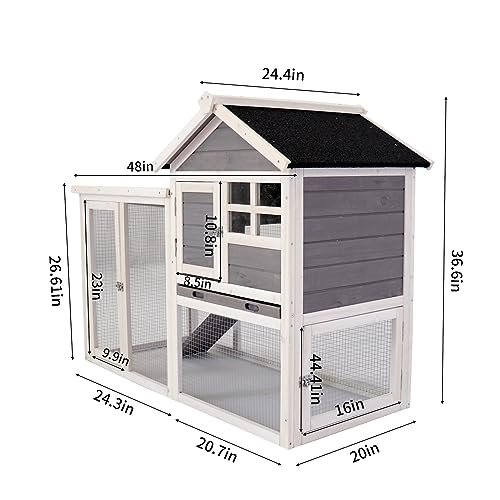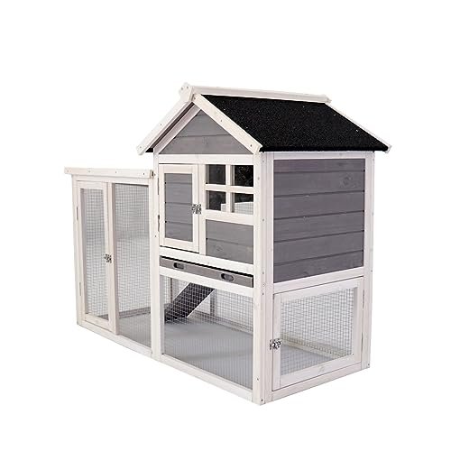 Nirvaer Deluxe Wooden Chicken Coop for Comforting Pet Habitat, Solid Wood Design, Hen House or Rabbit Hutch, Gray