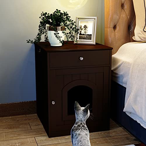 Nirvaer Discreet Pet Care with Wooden Cat Litter Box Enclosure, Stylish Side Table Design, Easy Assembly, Brown Finish