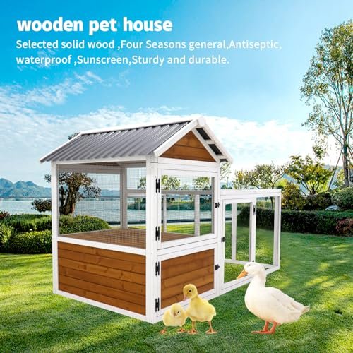 Nirvaer Large Outdoor Chicken Coop for Comfort and Care, Durable Wooden Design for Chickens, Ducks, and Rabbits, Weather-Resistant, Yellow Brown Gradient