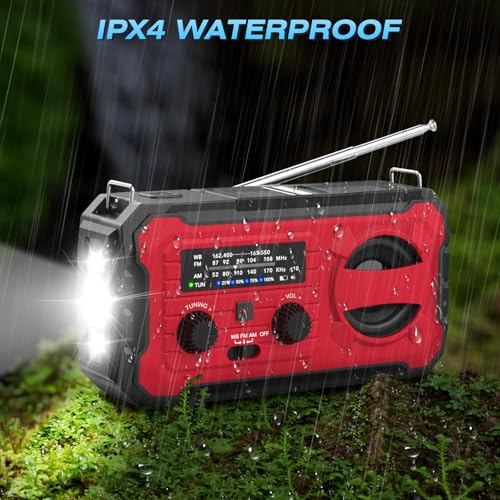 [NOAA Weather Alert Radio]: Emergency weather radio receives severe weather alerts, allowing you to prepare and stay safe in advance of impending natural disasters such as hurricanes, tornadoes, typhoons, rainstorms, fires, blizzards, earthquake, sandstorms, tsunamis, floods and more. Portable radio with waterproof and drop-proof design for durability even in harsh conditions. NOAA Weather alerts can only be received when the radio is turned on and the WB band is selected