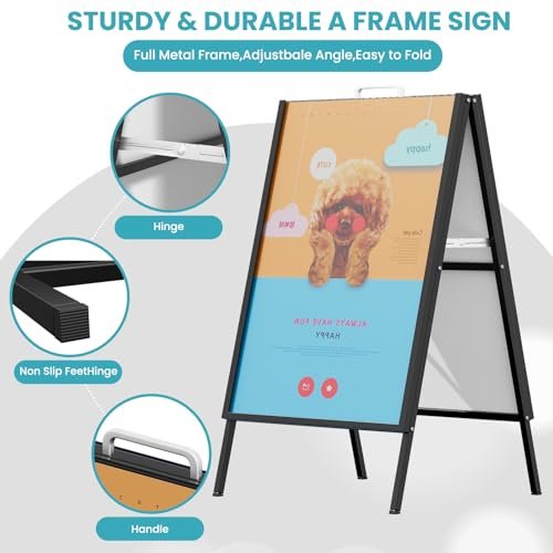 Noliven 6-Pack A Frame Signs 24 x 36 Inch, Heavy Duty Sandwich Board Signs with Carry Handle Design, Double-Sided A Frame Sign Holder Business Signabord for Outside(Frame only)
