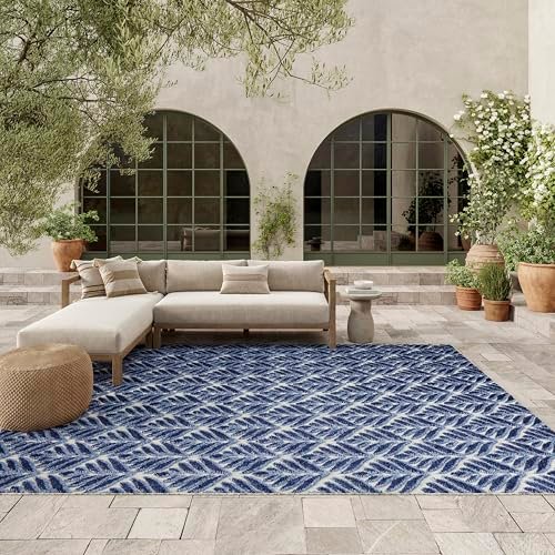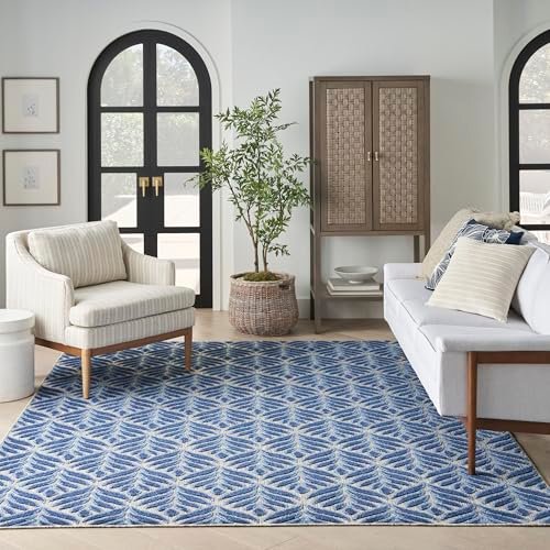 Nourison Aloha Indoor-Outdoor Blue 7′ x 10′ Area Rug, Easy Cleaning, Non Shedding, Bed Room, Living Room, Dining Room, Kitchen (7×10)