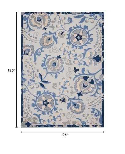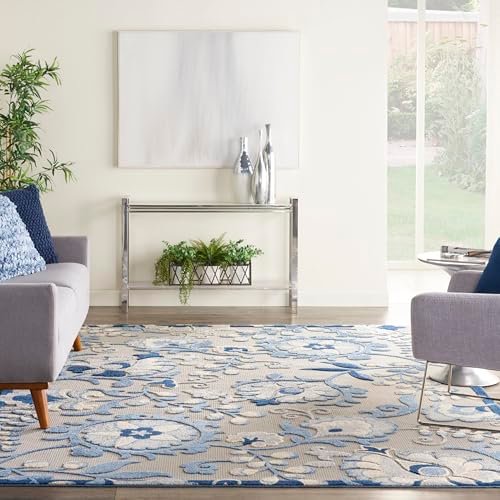 Nourison Aloha Indoor/Outdoor Blue/Grey 7’10” x 10’6″ Area Rug, Easy Cleaning, Non Shedding, Bed Room, Living Room, Dining Room, Backyard, Deck, Patio (8×11)