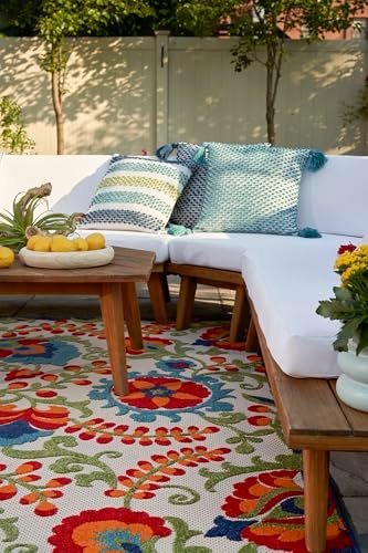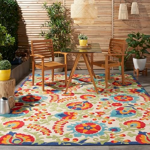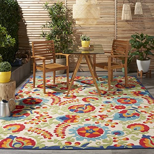 Nourison Aloha Indoor/Outdoor Multicolor 7’10” x 10’6” Area–Rug, Easy–Cleaning, Non Shedding, Bed Room, Living Room, Dining Room, Backyard, Deck, Patio (8×11)