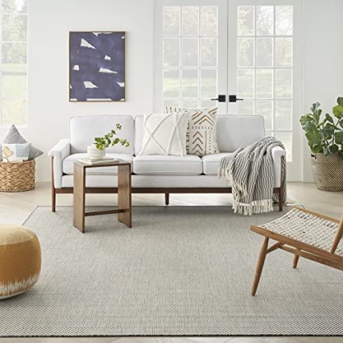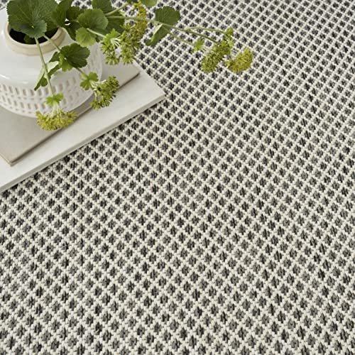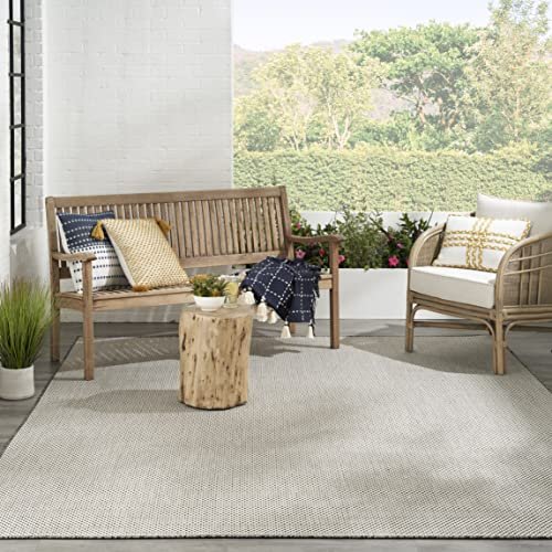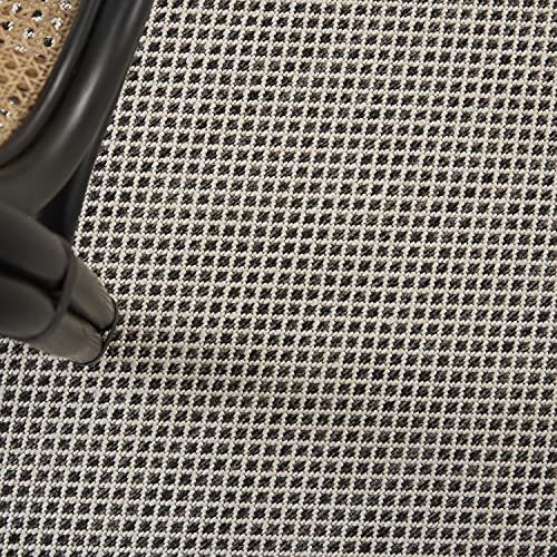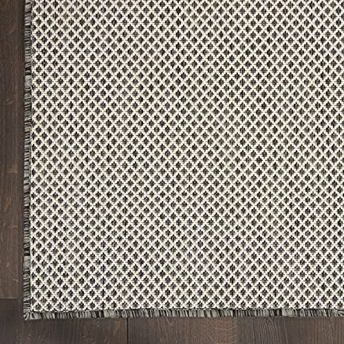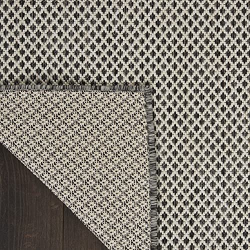 Nourison Courtyard Indoor/Outdoor Ivory Charcoal 9′ x 12′ Area Rug, Geometric, Easy Cleaning, Non Shedding, Bed Room, Living Room, Dining Room, Deck, Patio, Backyard (9×12)
