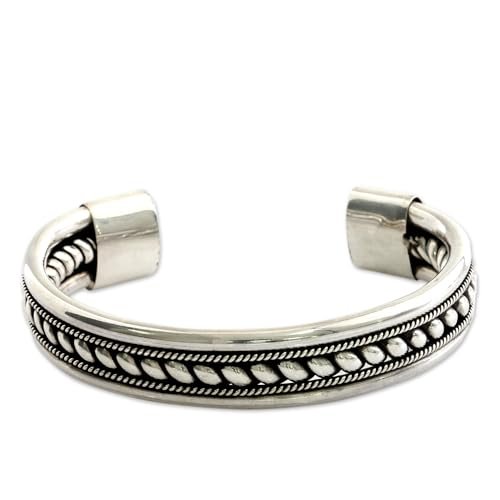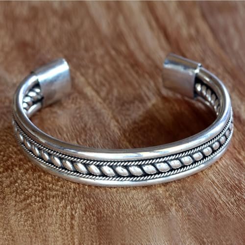 NOVICA Artisan Handcrafted Sterling Silver Cuff Bracelet Modern Bali Indonesia Balinese Traditional [6 in L (end to End) x 0.6 in W] ‘ Strength of Celuk’