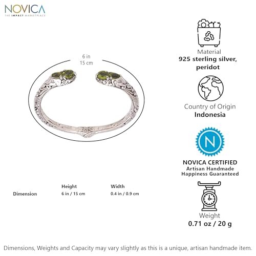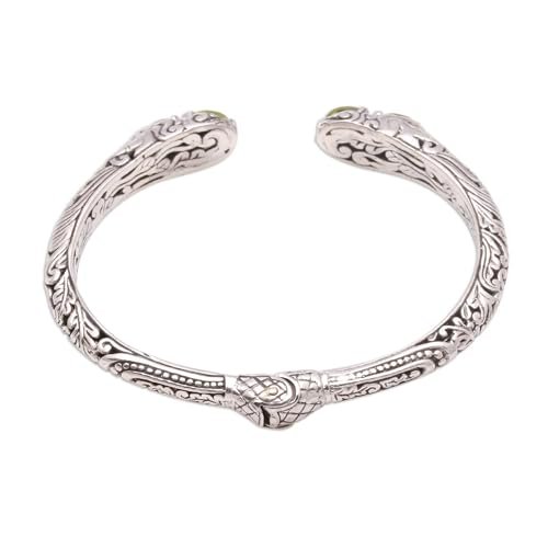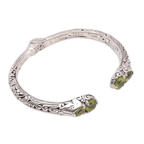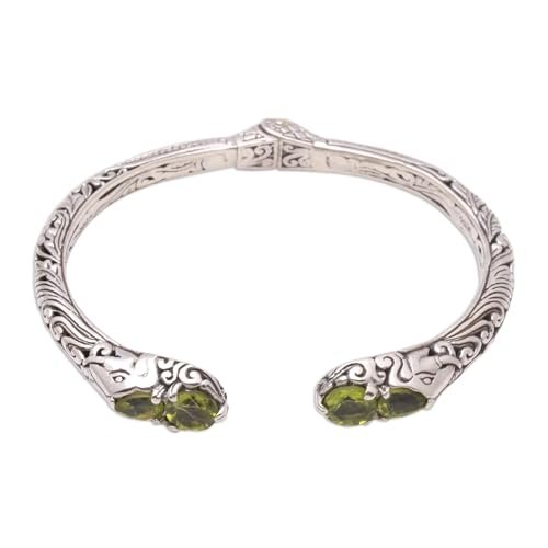 NOVICA Artisan Handmade Peridot Cuff Bracelet Elephant Motif from Bali Sterling Silver Indonesia Gemstone [6 in L (end to End) x 0.4 in W] ‘ Elephant’ S Treasure’