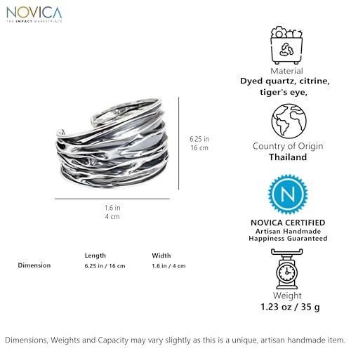 NOVICA Artisan Handmade Sterling Silver Cuff Bracelet Textured Crafted by Thailand Hill Tribe Modern [6.25 in L (end to End) x 1.6 in W] Wide River