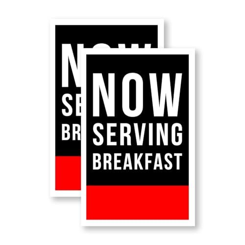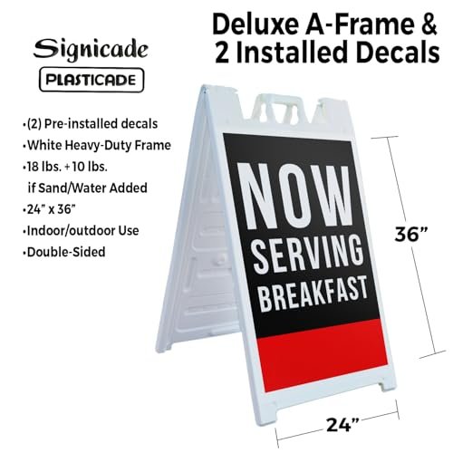 Now Serving Breakfast 24″ x 36″ Double Sided A-Frame Sidewalk Sign Includes 2 Installed Decals Foldable Portable White Signicade Sandwich Board Morning Specials Restaurant Promotions Freshly Cooked