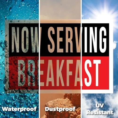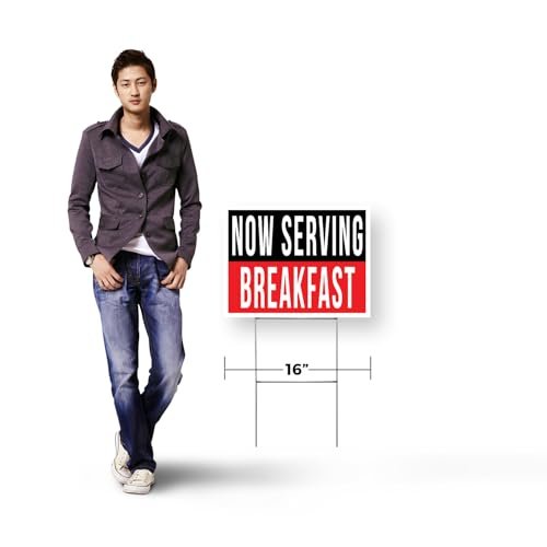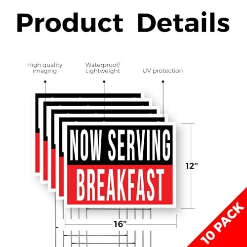 Now Serving Breakfast Yard Sign 10 Pack of 12 Inch x 16 Inch Double Sided Weatherproof Heavy-Duty Plastic with Stake | Morning Specials, Restaurant Promotions, Freshly Cooked | Made in USA