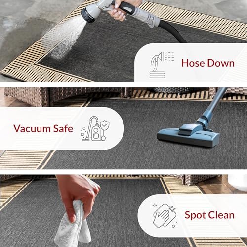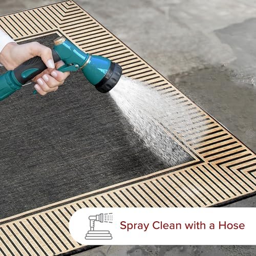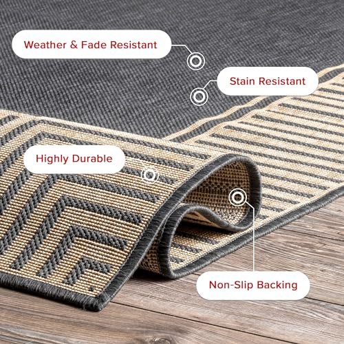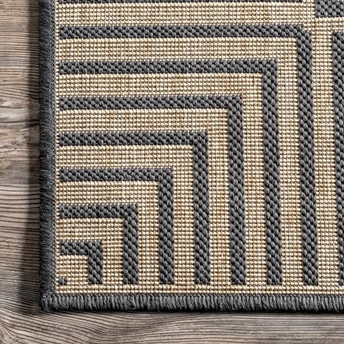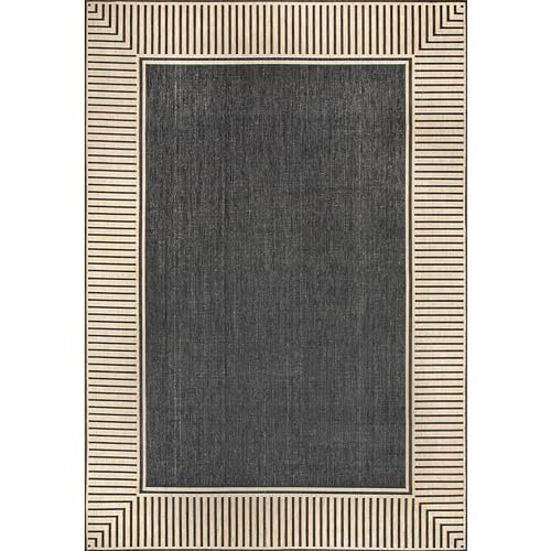 nuLOOM 9’6″ x 12′ Outdoor Area Rug, Casual Design With Striped Border, Stain Resistant, Highly Durable, For Patio, Balcony, Bedroom, Living Room, Dining Room, Bathroom, Dark Grey