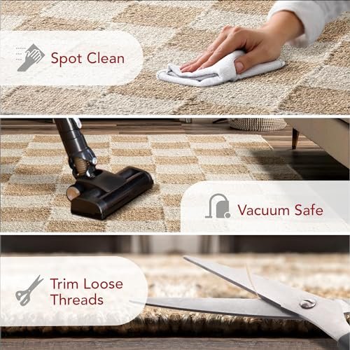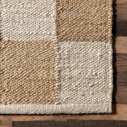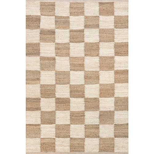 nuLOOM Christana Traditional Checkered Jute Area Rug – 5×8 Jute Area Rug Modern/Contemporary Ivory Rugs for Dining Room Rug Neutral Rug Living Room Rug