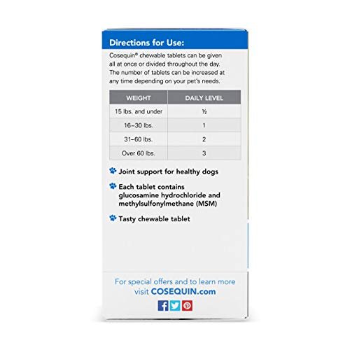 Contains Glucosamine for Dogs – Cosequin contains glucosamine hydrochloride (FCHG49), plus methylsulfonylmethane (MSM). This unique combination of ingredients supports healthy joints.