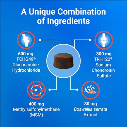 Contains Glucosamine, Chondroitin, plus MSM and Boswellia to help support joint health and mobility.