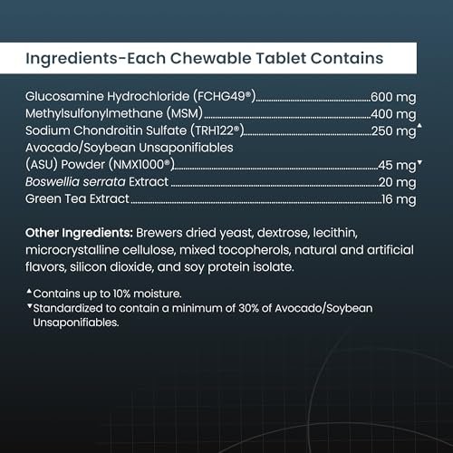 ASU COMPLIMENTS GLUCOSAMINE AND CHONDROITIN SULFATE: Dasuquin is a comprehensive joint supplement for dogs with ASU, a plant lipid shown to be safe in dogs.