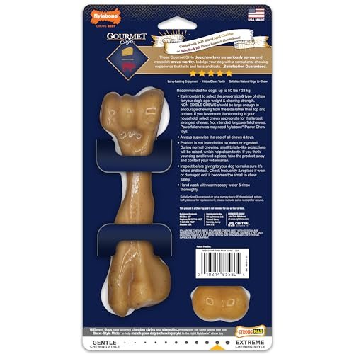 Nylabone Gourmet Style Strong Chew Toy Bundle, Toys for Dogs, Baby Back Ribs & Aged Cheddar Flavor, Large – Up to 50 lbs, 2 Pack