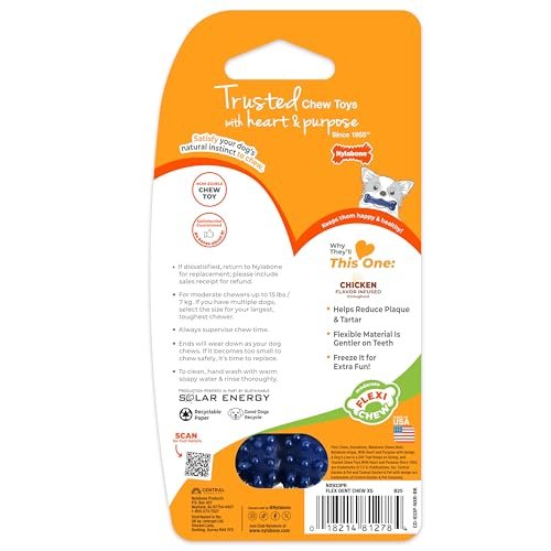 Nylabone Textured Dental Bone Flexi Chew Toy for Dogs, Dog Toys for Moderate Chewers, Chicken Flavor, X-Small – Up to 15 lbs, 1 Count