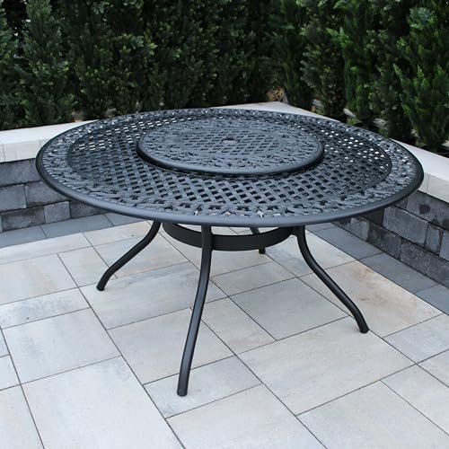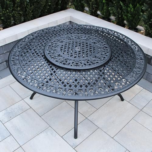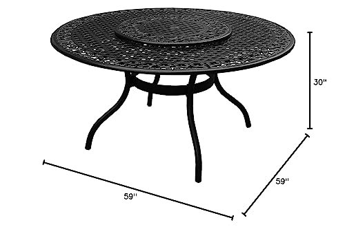 Oakland Living Ornate Outdoor Mesh Aluminum 59-in Black Large Round Patio Dining Table with Lazy Susan