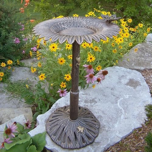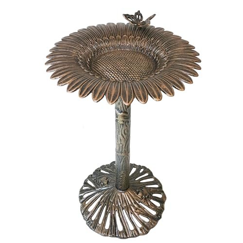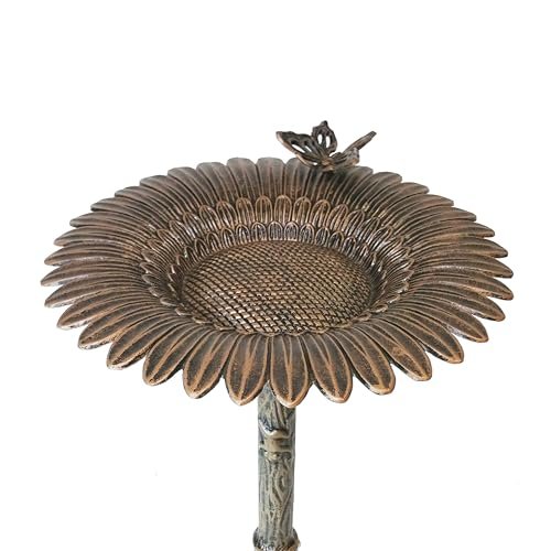 Oakland Living Round Cast Aluminum Metal 32-in Bronze Bird Bath with Butterflies and a Sunflower