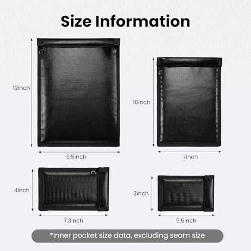 OFASIZEN Faraday Bags, Anti-Tracking Faraday Cage, Set of 4 Sizes for Laptops, Tablets, Phones and Car Keys, RFID Signal Blocker Pouch, Fireproof & Waterproof (Black)