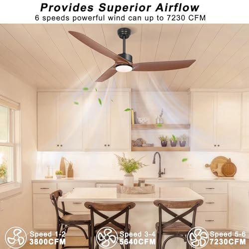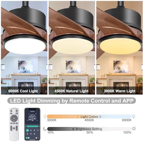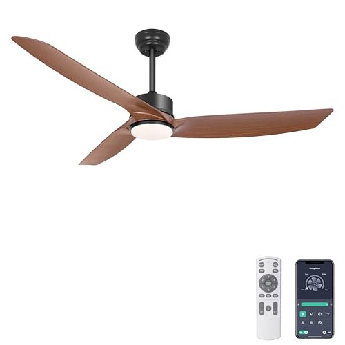 Ohniyou 56 Inch Ceiling Fan with Lights, Modern 3 Blades Ceiling Fan with Remote/APP Control Dimmable 3 CCT, Walnut Indoor Outdoor Ceiling Fan for Covered Patios Farmhouse Living Room