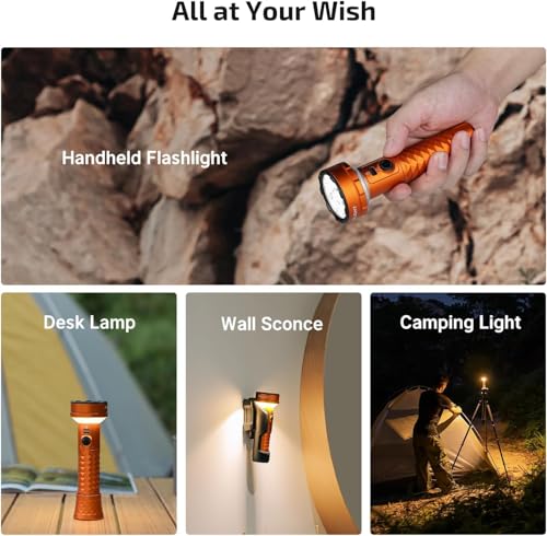 [5 Levels Brightness] With six highly powerful LEDs, this flashlight delivers an impressive maximum output of 5,000 lumens, illuminating a strong intense beam of 245 meters