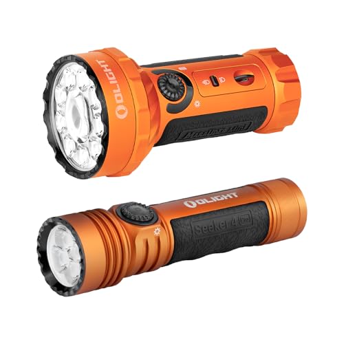 OLIGHT Marauder Mini 7,000 Lumens Bright Flashlight with 600 Meters Beam Distance Bundle with Seeker 4 Pro Rechargeable Flashlights