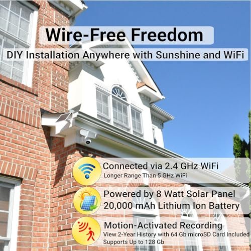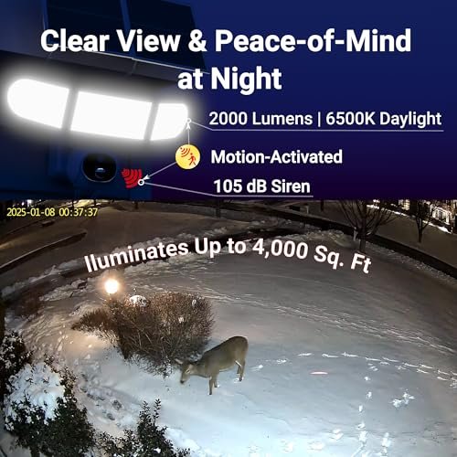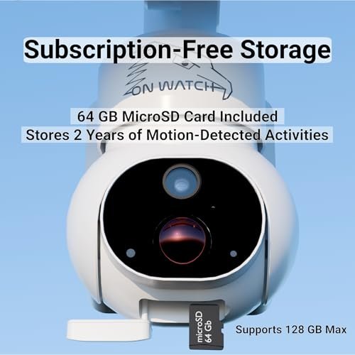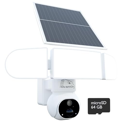 ON WATCH Solar Floodlight Security Camera Wireless Outdoor, Motion-Activated Recording/Notification/2000lm Floodlight/105dB Siren, 360° Pan/Tilt, 2K, WiFi, Live View/Talk, No Monthly Fee, 64GB SD Card