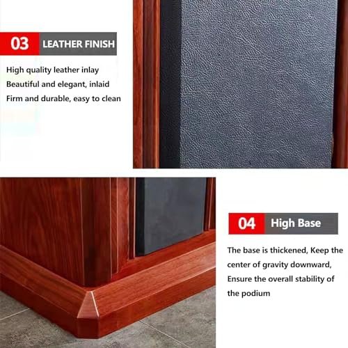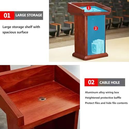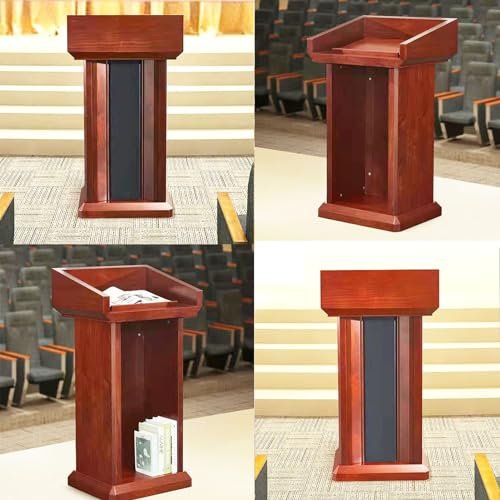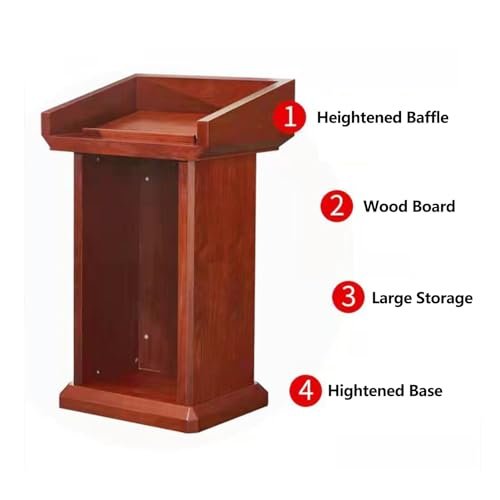 OTQEFTN Lecterns & Podiums Wood, Standing Podium Desk for Teachers, Church Pulpit Podium, Podium Pulpit Stand with Shelf for Church Wood with Tilted Desktop and High Baffle