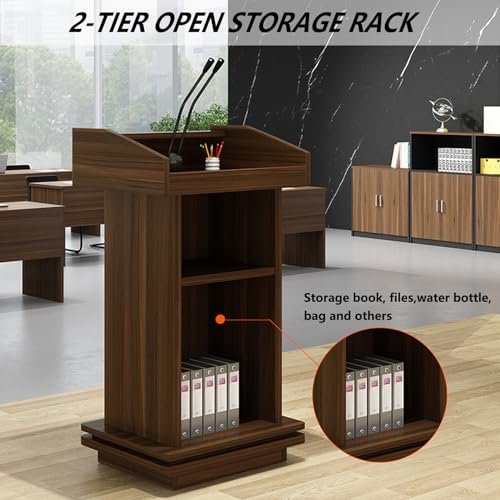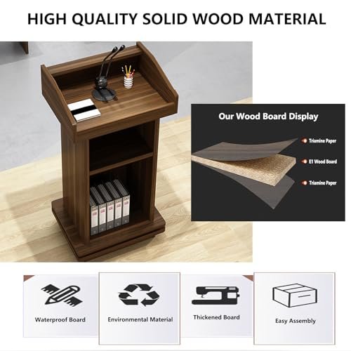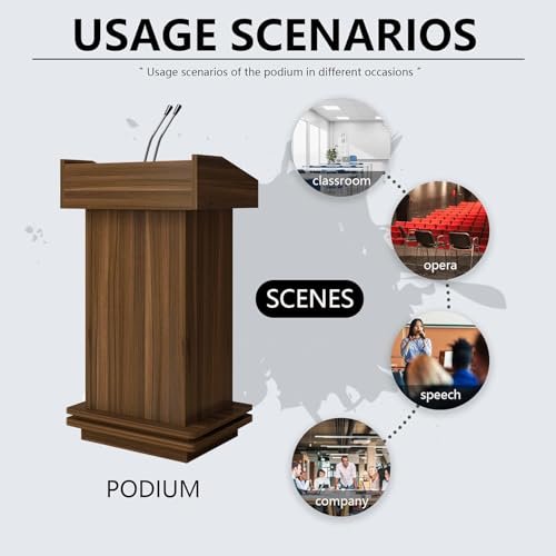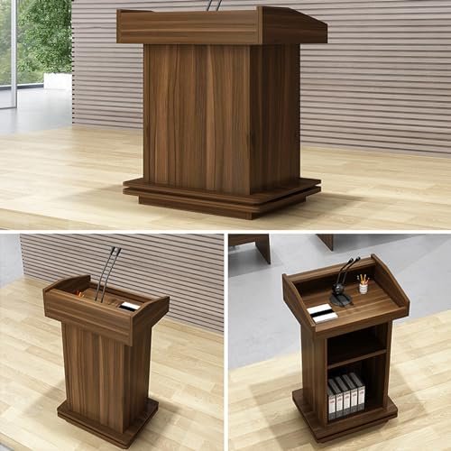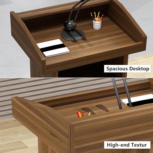 OTQEFTN Podium Stand for Church, Pulpits for Churches Wood, Lectern Podium Stand Flat Top with Baffle Plate, Textured Presentation Podium with Open Storage Area for Conference Speech