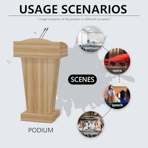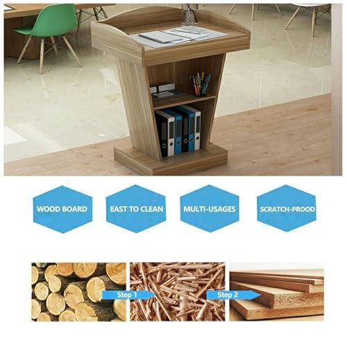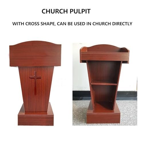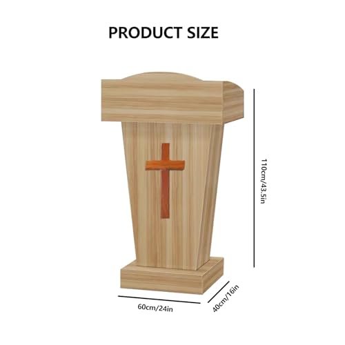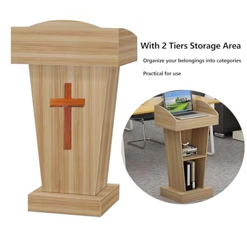 OTQEFTN Podium Stand with A Cross Made Out of Wood, Podium Pulpit Stand with Shelf for Church Wood, Lecterns & Podiums with 2 Tiers Storage Area, Church Pulpit Podium