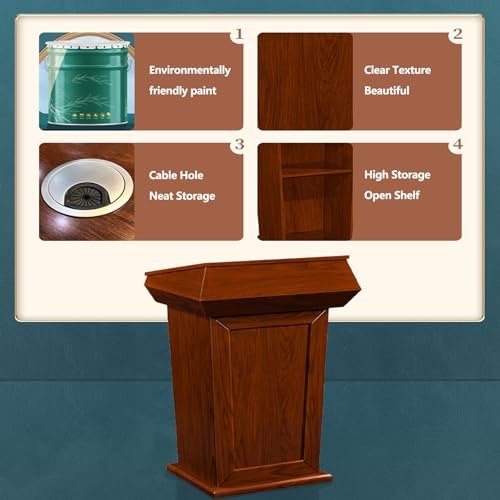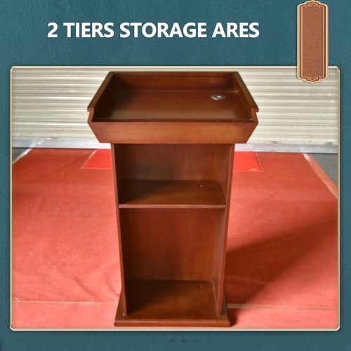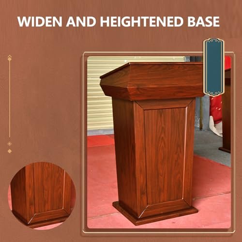 OTQEFTN Podium Stand Wood, Lectern Podium Stand for Church, Spacious Pulpit Podium with 2 Tiers Storage Area, Church Classroom Lecture with High Baffle, Made of MDF Board
