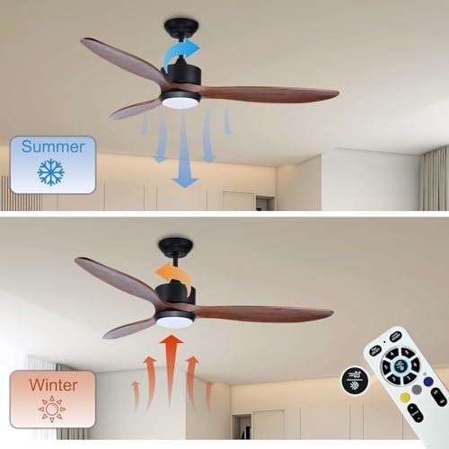 Ovlaim 52 Inch Wood Ceiling Fans with Lights Remote Control, 3 Blade Smart Ceiling Fan for Bedroom Living Room Patio Indoor Outdoor, ETL Listed High CFM Quiet DC Motor