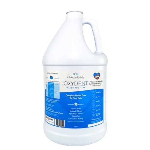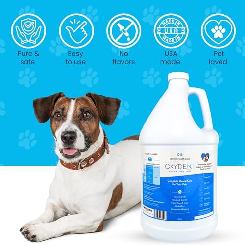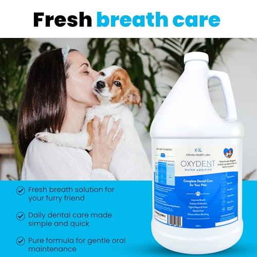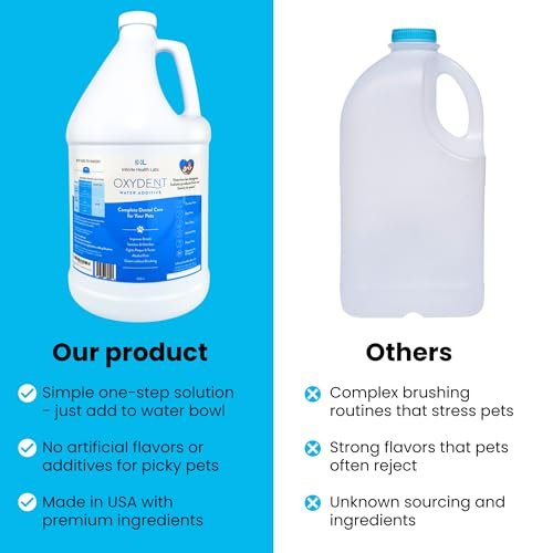 Oxydent Premium Pet Dental Care Solution – Pet Water Additive & Mouthwash for Teeth Cleaning – Eliminate Bad Dog & Cat Bad Breath – Dog Dental Rinse – Fights Tartar & Plaque – 1 Gallon
