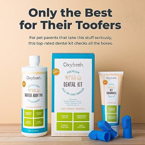 Oxyfresh Premium Pet Dental Kit for Dogs & Cats – Easy Solution for Dog and Cat Fresh Breath, Clean Teeth, Control Plaque & Tartar – Vet Formulated Pet Toothpaste 4oz + Water Additive 16oz Kit