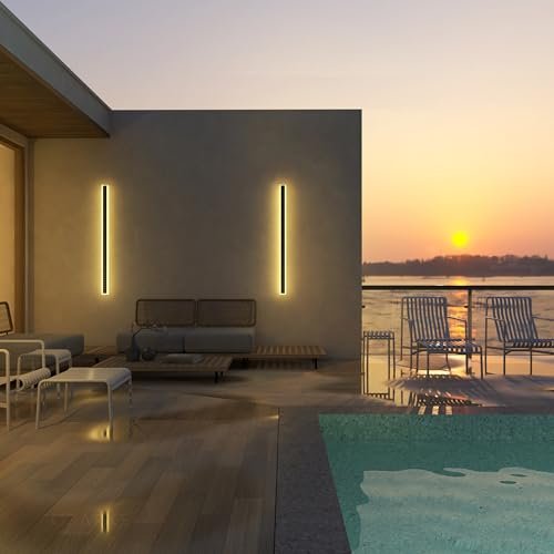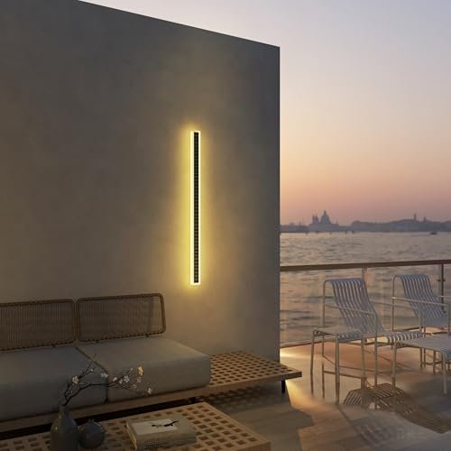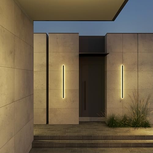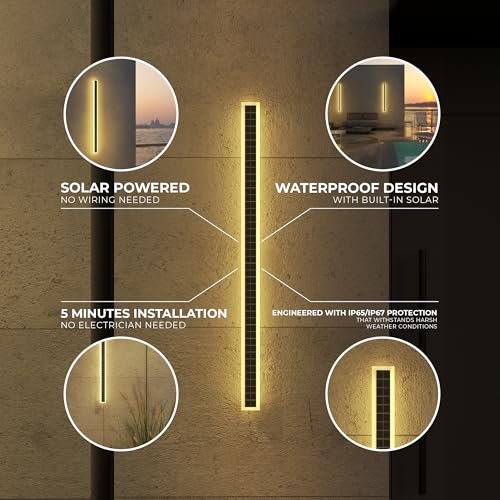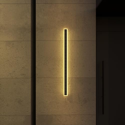 Ozarke Immense Built-in Solar LED Outdoor Linear Wall Light Fixture, Modern Long Sconce w/Frosted Acrylic IP65 Waterproof for Patio, Balcony, Garage & Porch – Warm 3000K (24 inches)