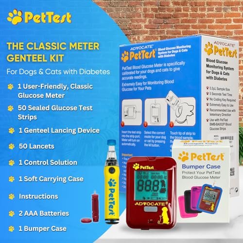 Painless Pet Glucose Monitoring Kit and Black Bumper Case for Dogs & Cats, Classic Blood Sugar Check, Includes Meter, 50 Test Strips, Genteel Lancing Device, 50 Lancets