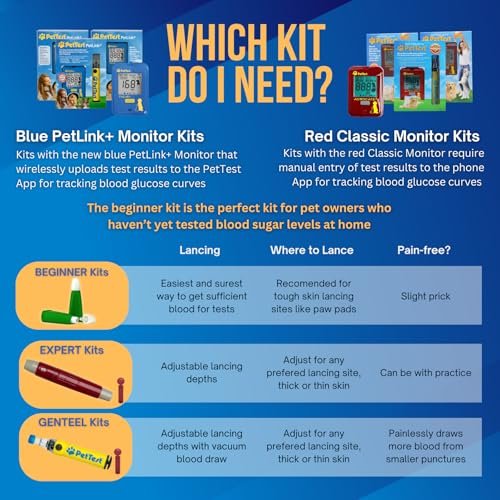 Painless Pet Glucose Monitoring Kit and Blue Bumper Case for Dogs & Cats, Classic Blood Sugar Check, Includes Meter, 50 Test Strips, Genteel Lancing Device, 50 Lancets