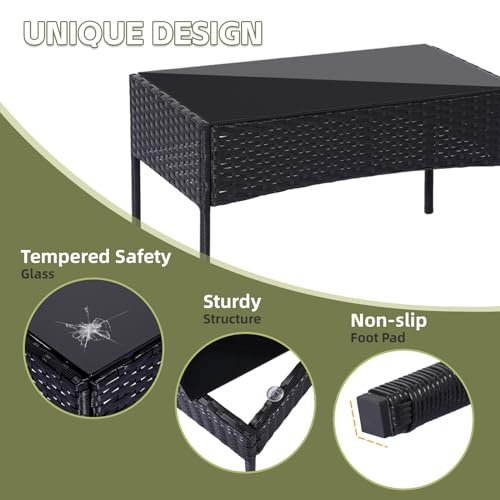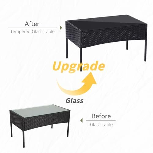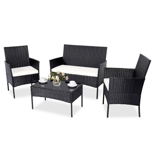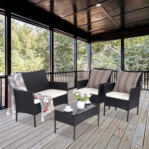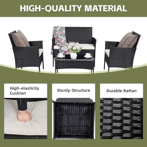 PAIQIAN Patio Furniture Set,4 Piece Garden Conversation Set, Outdoor Wicker Rattan Table and Chairs, Black Patio Set, Sectional Sofa with Thick Cushion for Garden, Yard, or Porch (Black/Beige)