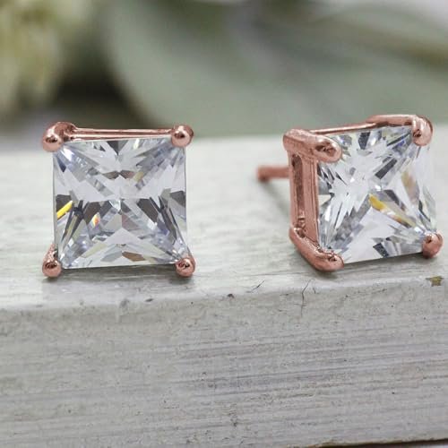 PARIKHS Princess Cut Diamond Stud Earring in 14K Rose Gold with Secure Screw Back – 0.20 Carat Natural Diamond (I3 Clarity) – Elegant & Lightweight Single Stud for Women – Perfect for Gifting, Daily Wear & Special Occasions