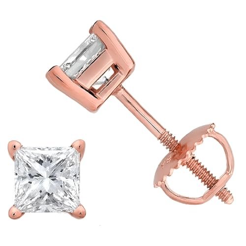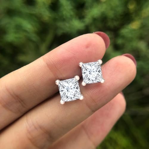 PARIKHS Princess Cut Diamond Stud Earring in 14K Rose Gold with Secure Screw Back – 0.25 Carat Natural Diamond (I3 Clarity) – Dainty and Durable Stud for Women – Perfect for Everyday Elegance, Gifts & Special Moments