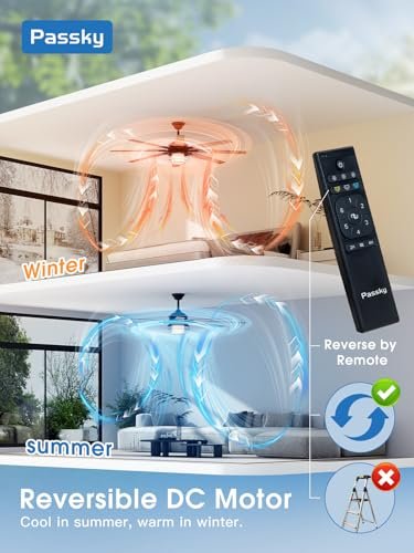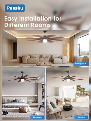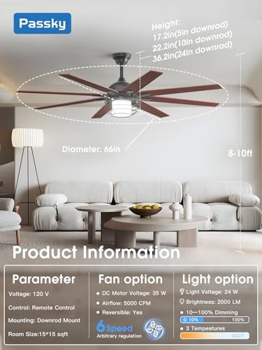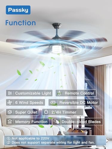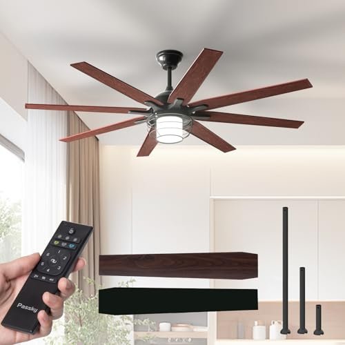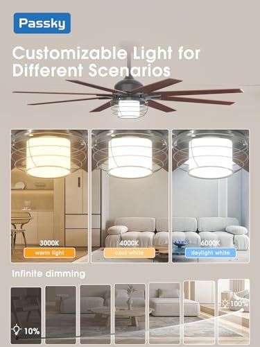 Passky Ceiling Fans with Lights, 66 inch Black Ceiling fan with Light and Remote Control, Reversible, Dimmable, 3CCT, Quiet, Caged Ceiling Fan for Farmhouse, Bedroom, Living Room, Indoor/Outdoor Use