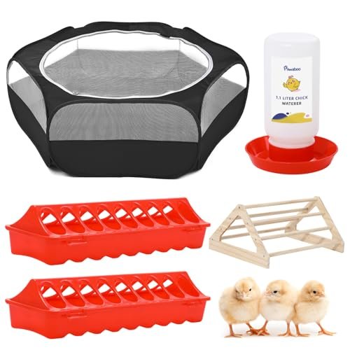 Pawaboo 5-in-1 Chicken Brooder Box for Chick Starter Kit, Includes Pet Cage Tent, Chicks Perch, Chicks Feeder, 1.1L Chick Waterer, Baby Chicken Supplies (Brooder Set), Black
