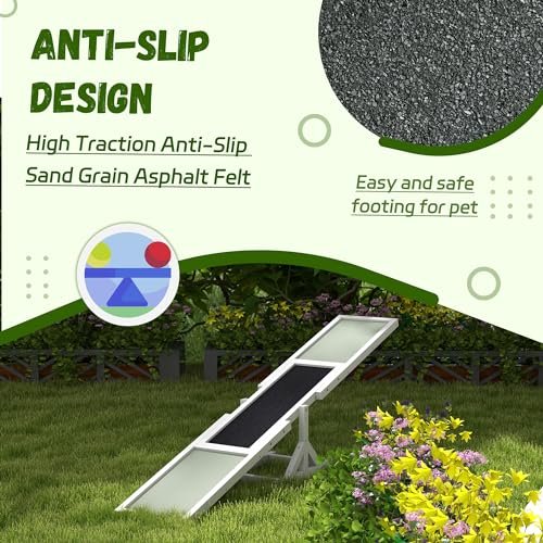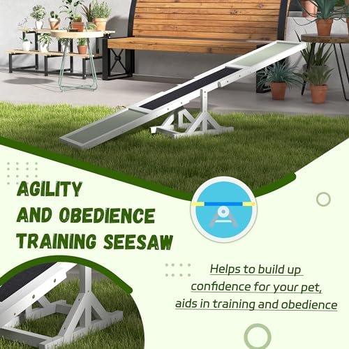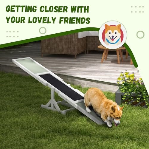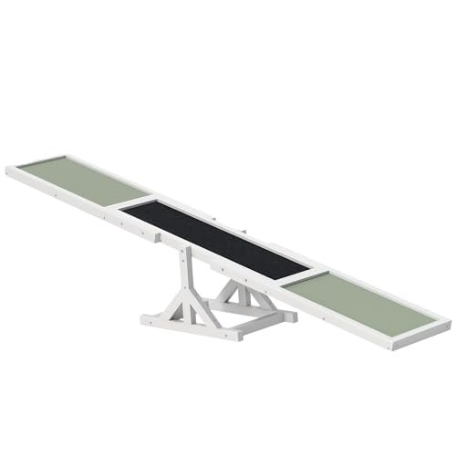 PawHut Wooden Dog Agility Seesaw for Training and Exercise, Platform Equipment Run Game Toy, Weather Resistant Pet Supplies, 71″ L x 12″ W x 12″ H, White