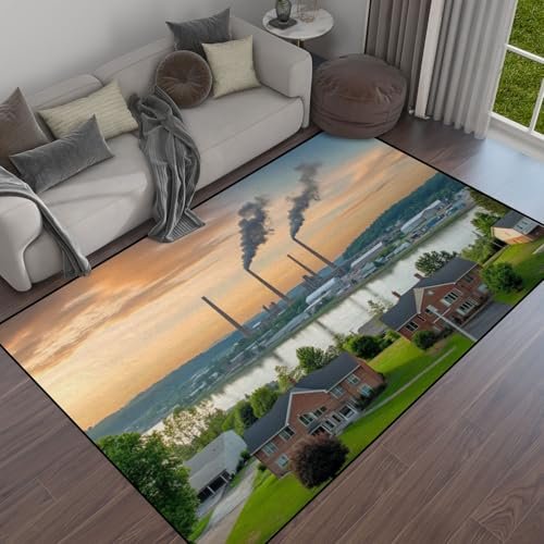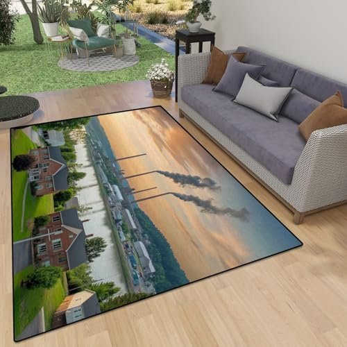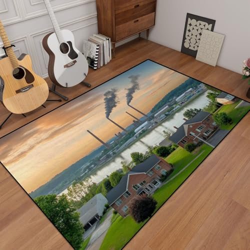 PeeNoke Power Plant polluting air Burning Fuel for Production Electrical Area Rug Outdoor Patio Rug Play Mat Modern Floor Carpet Non-Slip Home Decor Living Room Kids Bedroom Nursery, 6×9 ft