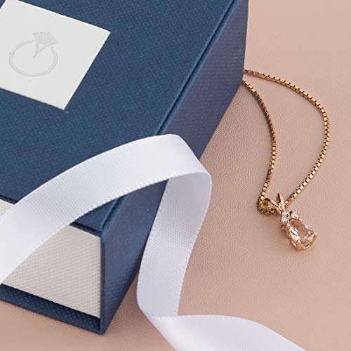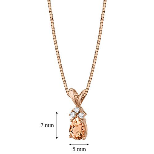 PEORA 14K Rose Gold Morganite and Diamond Pendant for Women, Genuine Gemstone Dainty Teardrop Solitaire, Pear Shape, 7x5mm, 100% Natural & Real, Pretty Peach Pink Morganite, w/Jewelry Box