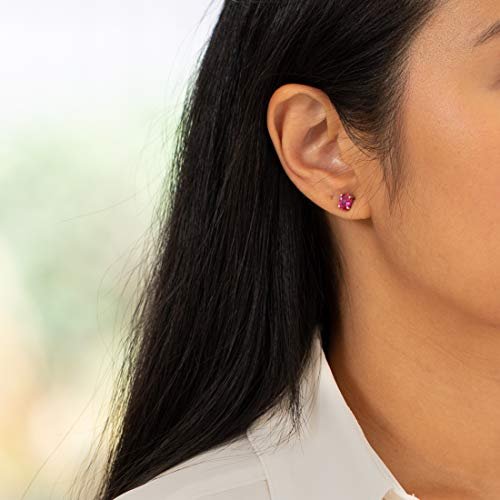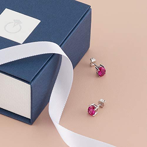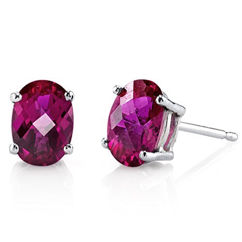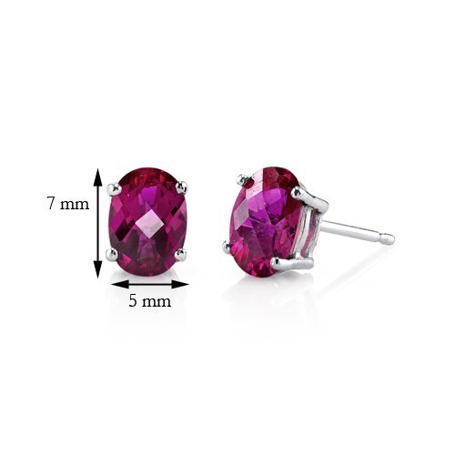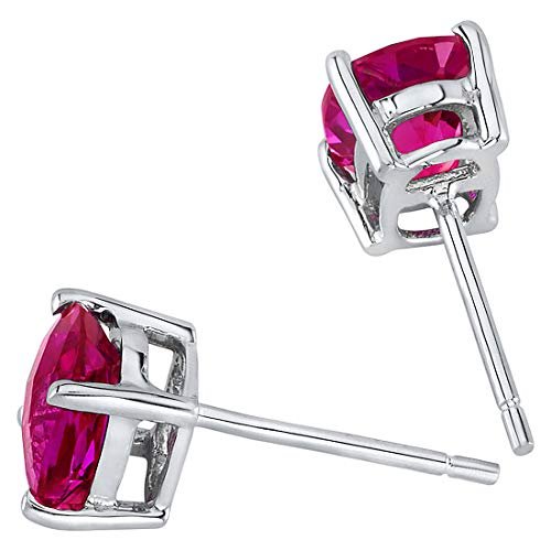 Peora 14K White Gold 2 Carats Created Ruby Earrings for Women, Classic Solitaire Studs, 7x5mm Oval Shape, Hypoallergenic, Friction Back, Ruby Gold Stud Earrings, July Birthstone Earrings