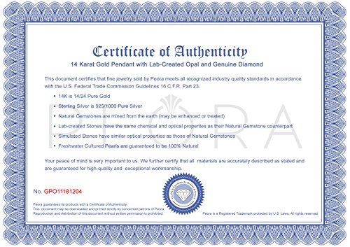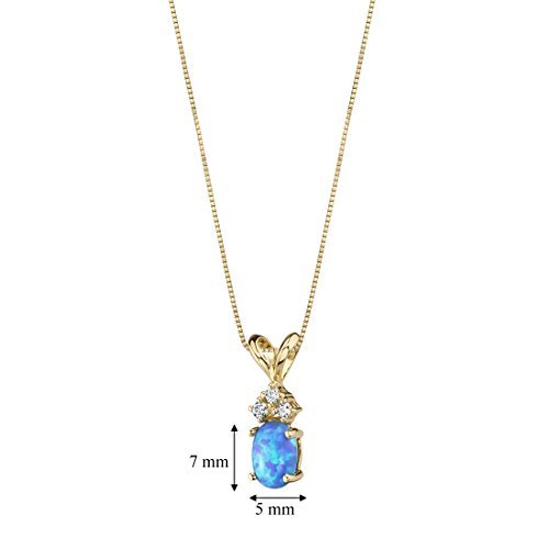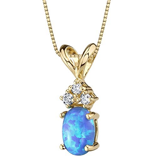 PEORA 14K Yellow Gold Created Blue Opal with Genuine Diamonds Pendant for Women, Dainty Solitaire, AAA Grade Oval Shape 7x5mm, October Birthstone Necklace, Fire Opal Necklace, w/Jewelry Box
